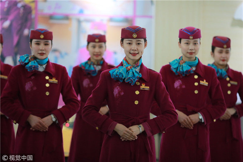 2018年12月27日,四川成都,為備戰(zhàn)即將開(kāi)通的成雅鐵路,中國(guó)鐵路成都局集團(tuán)有限公司成都客運(yùn)段動(dòng)車(chē)二隊(duì)對(duì)成雅動(dòng)車(chē)的乘務(wù)人員進(jìn)行理論、形體、服務(wù)禮儀等內(nèi)容的培訓(xùn)。