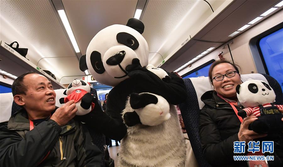 12月28日,在成都西至雅安的C6651次列車(chē)上,“熊貓”與旅客們互動(dòng)。