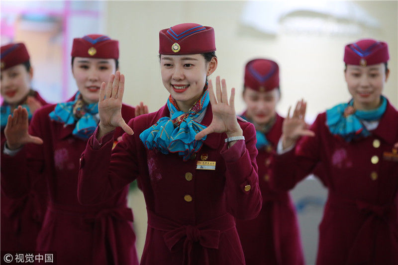 2018年12月27日,四川成都,為備戰(zhàn)即將開通的成雅鐵路,中國鐵路成都局集團(tuán)有限公司成都客運段動車二隊對成雅動車的乘務(wù)人員進(jìn)行理論、形體、服務(wù)禮儀等內(nèi)容的培訓(xùn)。