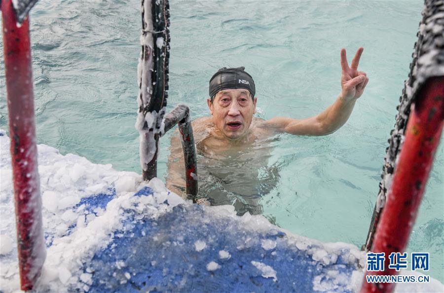 當(dāng)日,新疆烏魯木齊戶外氣溫接近零下20攝氏度,許多冬泳愛(ài)好者不懼嚴(yán)寒,來(lái)到烏魯木齊紅山游泳中心戶外泳池進(jìn)行冬泳運(yùn)動(dòng),鍛煉身體,磨練意志。