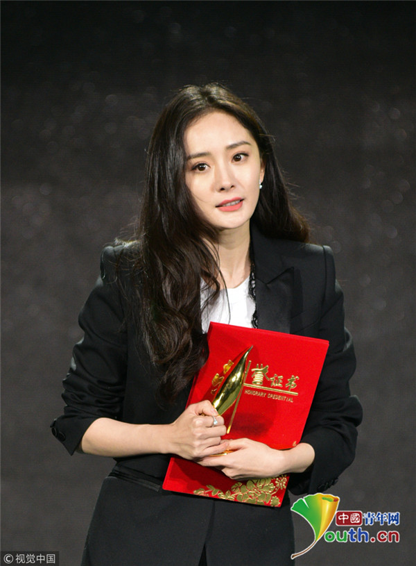 2018年12月28日,第五屆中國(guó)好演員表彰盛典頒獎(jiǎng)禮。楊冪西裝現(xiàn)身大紅唇配波浪卷精致干練,臺(tái)下端坐用厚衣服蓋腿,與工作人員悄悄交談端正舉著手顯呆萌。當(dāng)晚?xiàng)顑鐦s獲“綠寶石女演員”獎(jiǎng),上臺(tái)發(fā)表感言帥氣女強(qiáng)人范氣場(chǎng)十足。