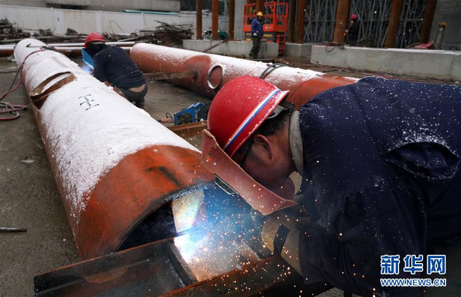 12月30日,南昌市洪都大道快速化改造工程項目工地上,中鐵四局五公司職工冒雪作業(yè)。新華社記者宋振平攝