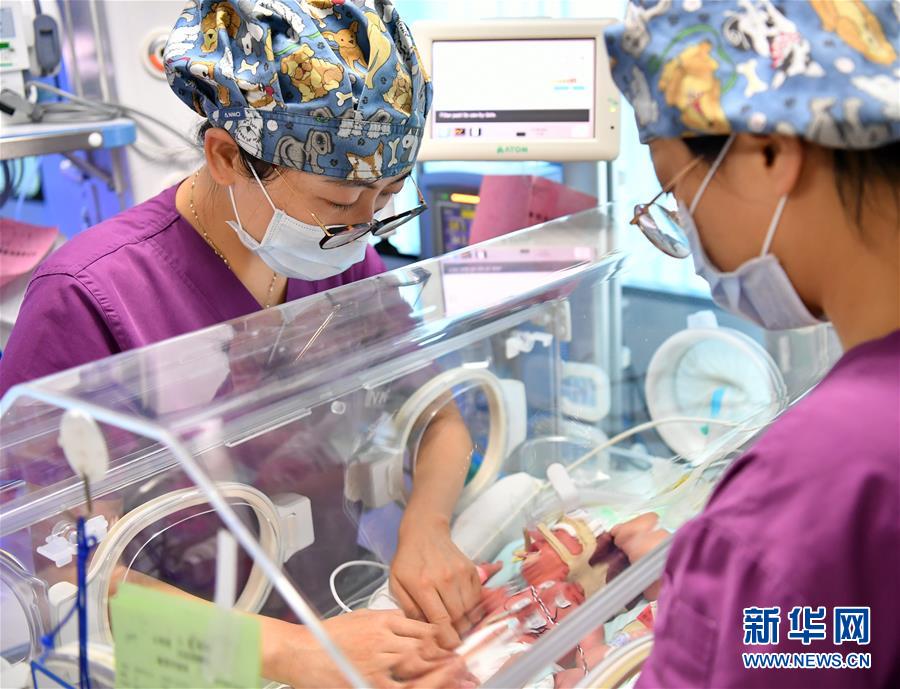 12月30日,山西省兒童醫(yī)院新生兒重癥監(jiān)護室的護士在為新生兒做護理。新華社記者曹陽攝