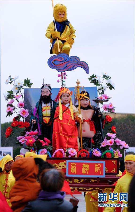 1月1日在展演活動(dòng)上拍攝的“抬閣”表演。2019年元旦,浙江省桐鄉(xiāng)市濮院鎮(zhèn)舉辦新年“非遺文化藝術(shù)節(jié)”活動(dòng),濮院鎮(zhèn)下屬多個(gè)鄉(xiāng)村的傳統(tǒng)美食制作、手工藝品、非遺文化表演等鄉(xiāng)村特色非遺項(xiàng)目在濮院鎮(zhèn)中心廣場(chǎng)進(jìn)行集中展示展演。新華社記者 徐昱 攝
