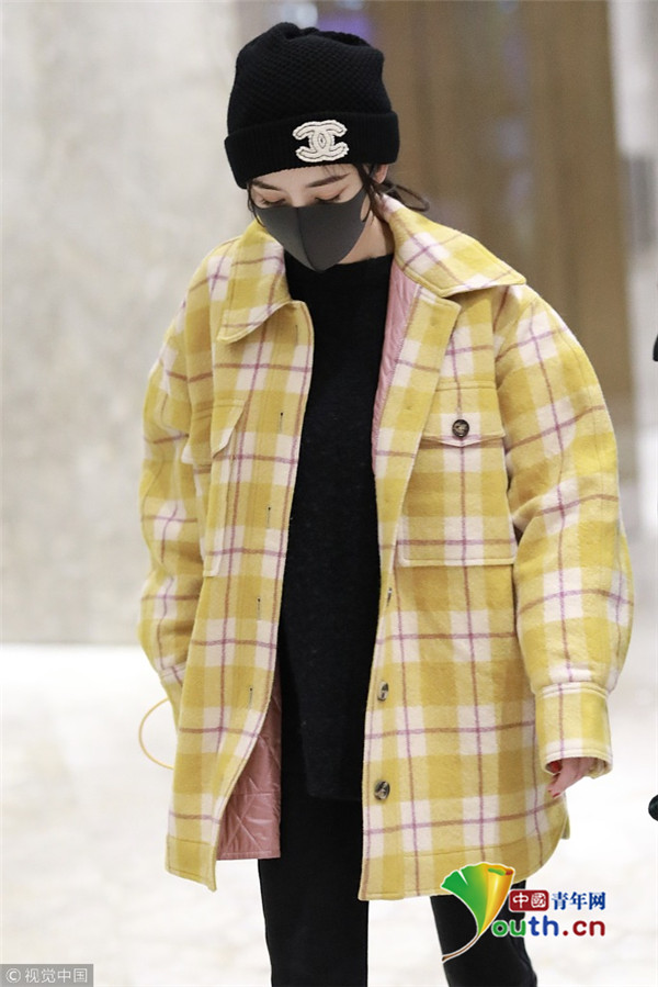 2018年1月6日,上海,楊冪現(xiàn)身某酒店。她戴著帽子口罩,身穿黑色套裝,而外面搭配的奶黃格子外套卻瞬間減齡,明亮又惹眼,無懼寒冬露著纖細(xì)腳踝,依舊是那個很會穿搭的大冪冪。