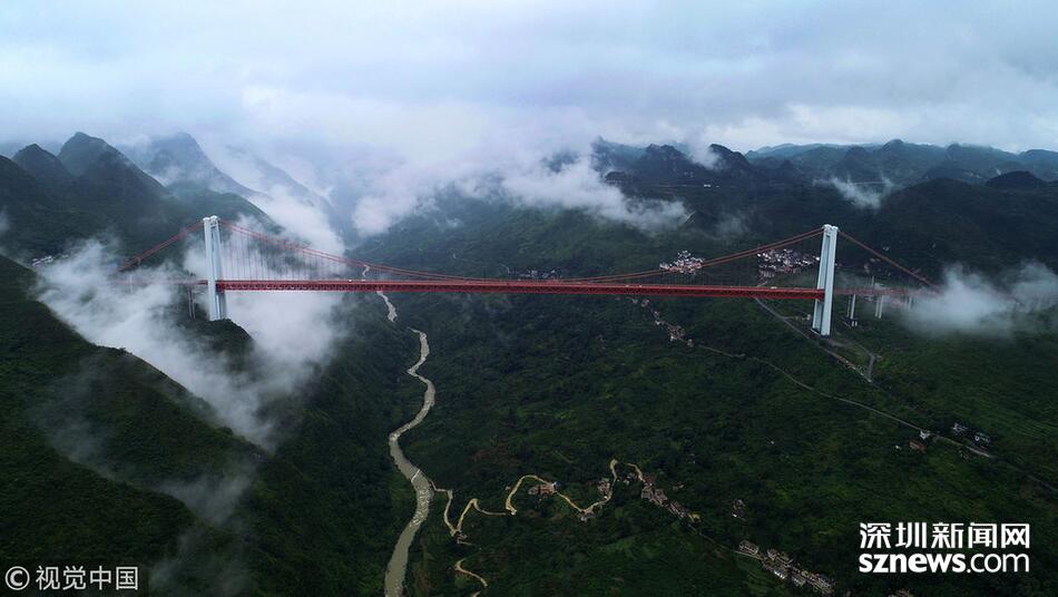 2018年6月26日,一場大雨后貴州省安順市關(guān)嶺縣壩陵河大峽谷云霧繚繞,橫跨兩岸的壩陵河大橋在云霧中時(shí)隱時(shí)現(xiàn),更顯雄偉壯觀。