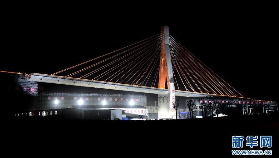 當日凌晨,自帶弧度和大陡坡、形似一輪新月和登云天梯的1.65萬噸斜拉橋在河南鄭州近郊的夜幕中轉(zhuǎn)體成功,標志著在建的鄭萬鐵路順利跨越徐蘭高鐵,同時也填補了國內(nèi)小曲線、大縱坡、大偏心轉(zhuǎn)體斜拉橋施工的空白。