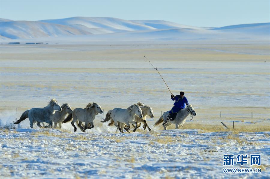 1月8日,牧民進行套馬表演。 時下正值草原冬季旅游旺季,內(nèi)蒙古自治區(qū)西烏珠穆沁旗的牧民們在雪原上一展身手,為游客展現(xiàn)獨特的民族風(fēng)情。 新華社記者 鄒予 攝