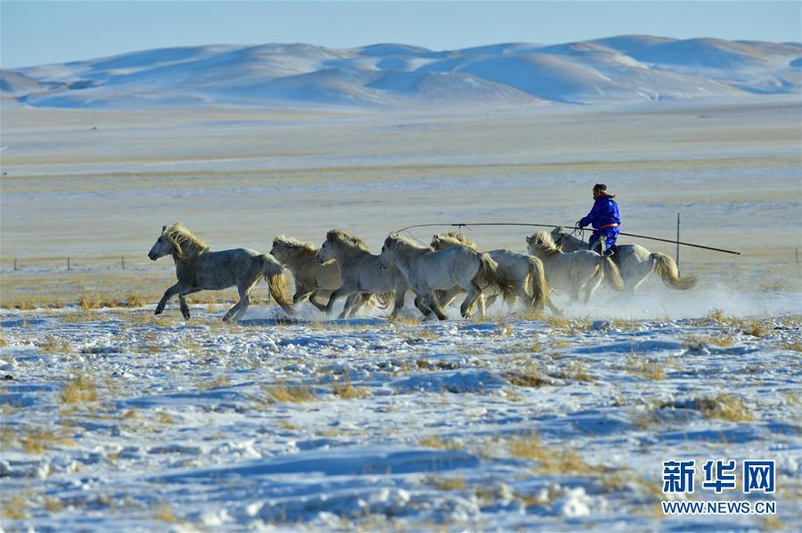 1月8日,牧民進行套馬表演。 時下正值草原冬季旅游旺季,內(nèi)蒙古自治區(qū)西烏珠穆沁旗的牧民們在雪原上一展身手,為游客展現(xiàn)獨特的民族風(fēng)情。 新華社記者 鄒予 攝