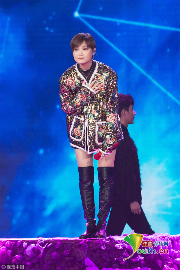 2019年1月8日晚,北京,李宇春亮相第17屆電影頻道電影百合獎(jiǎng)?lì)C獎(jiǎng)典禮,并演唱了一首《你是如此難以忘記》。當(dāng)晚的她一身閃花衣搭配黑色短褲長靴,一雙長腿吸睛十足,盡顯女人柔美和帥氣的雙重魅力,她手放胸前鞠躬向觀眾致意,謙遜有禮。