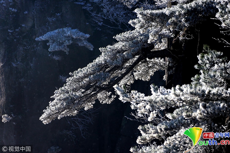 安徽黃山,受強(qiáng)冷空氣影響,氣溫突降,出現(xiàn)了四月陽春罕見的霧凇奇觀。