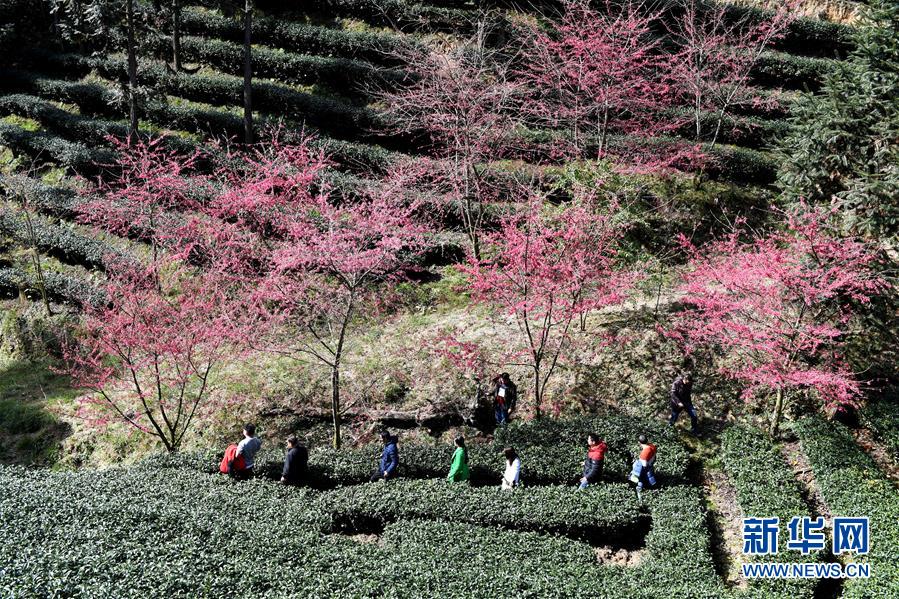福建省連城縣賴源鄉(xiāng)黃宗村海拔1000余米的高山茶園面積約千畝,園內(nèi)套種一萬余棵櫻花樹。寒冬時節(jié),綻放的櫻花與綠色茶園相互映襯,宛如一幅田園畫卷。