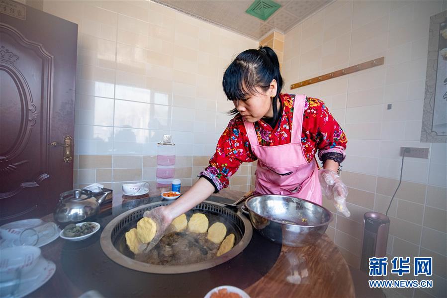 1月10日,在舒蘭市二合屯,農家樂老板楊會為游客準備東北特色菜肴。 新華社記者張楠攝