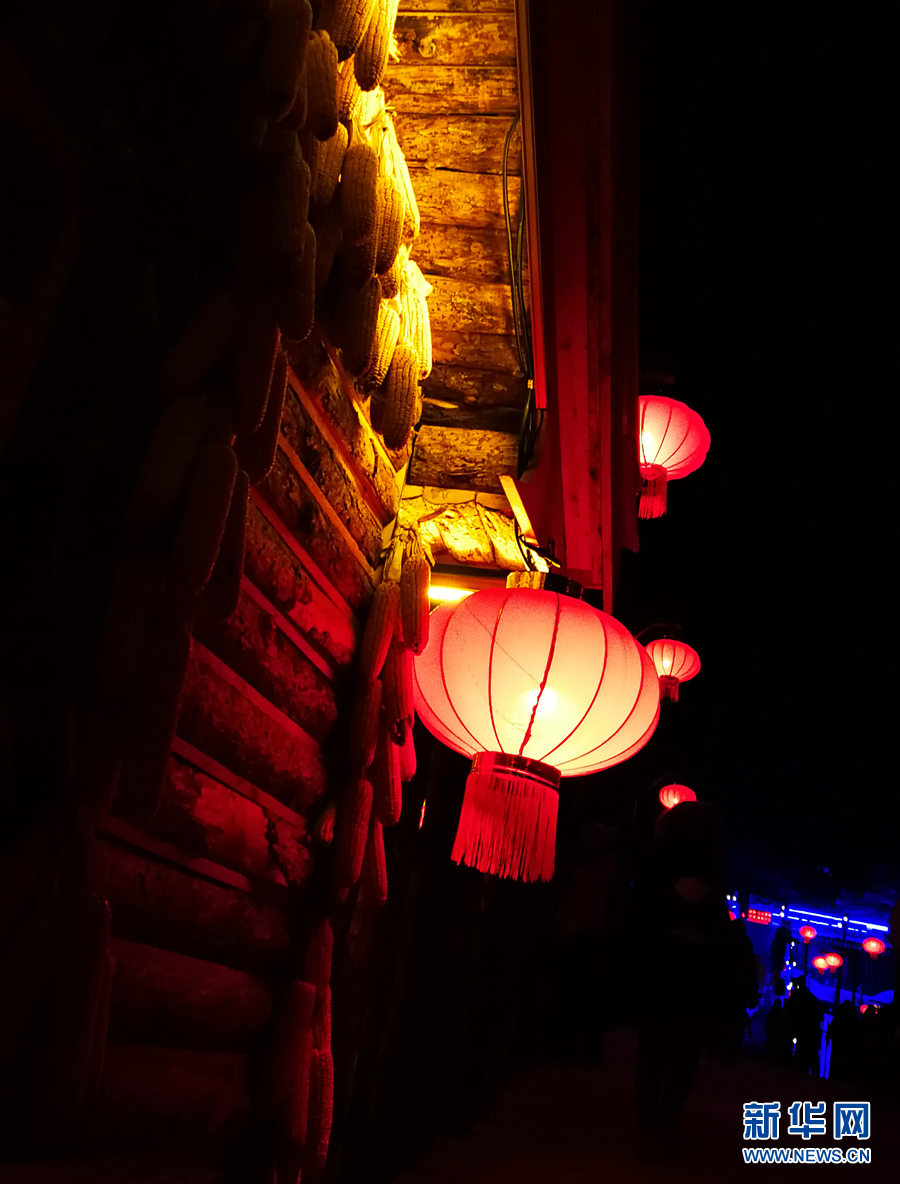 1月3日,燈光映照下的雪鄉(xiāng)一角。 新華網記者 張明宇 攝