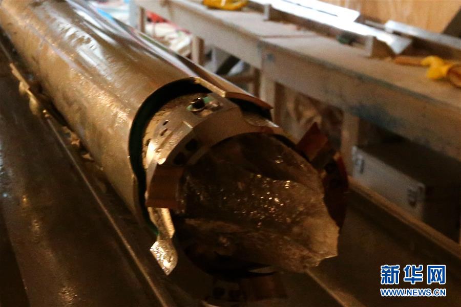 這是鉆取的2.8米長(zhǎng)冰芯(1月12日攝)。 新華社記者 劉詩(shī)平 攝