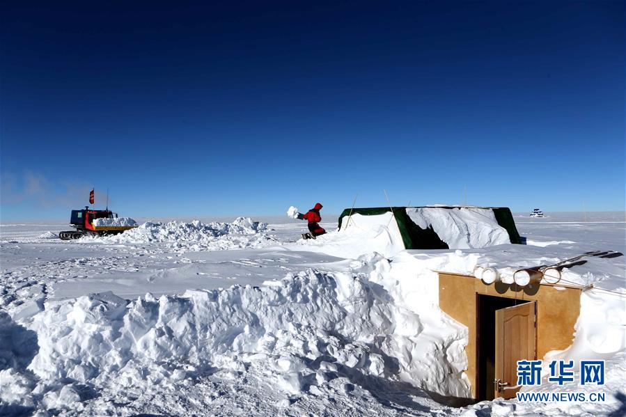 科考隊(duì)員清理深冰芯房周圍的積雪(1月6日攝)。 新華社記者 劉詩(shī)平 攝