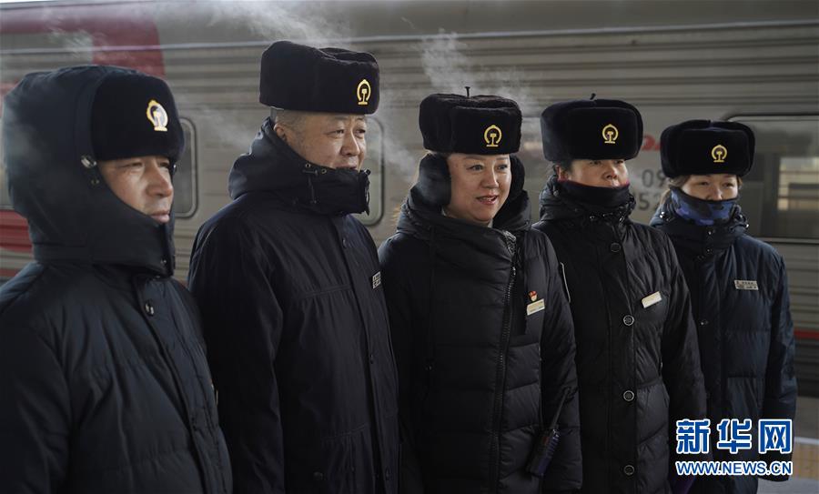 1月11日,在滿洲里火車站站臺(tái),“金鑰匙”服務(wù)臺(tái)客運(yùn)員在嚴(yán)寒中等待列車進(jìn)站。
