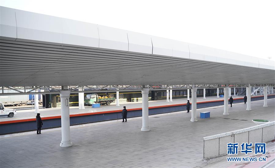 1月11日,在滿洲里火車站站臺,“金鑰匙”服務(wù)臺客運(yùn)員在嚴(yán)寒中等待列車進(jìn)站。