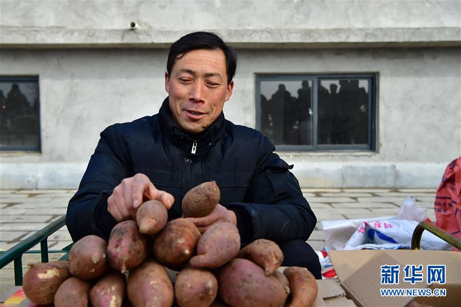 1月13日,村民在展銷活動上售賣紅薯。 新華社記者 馮大鵬 攝