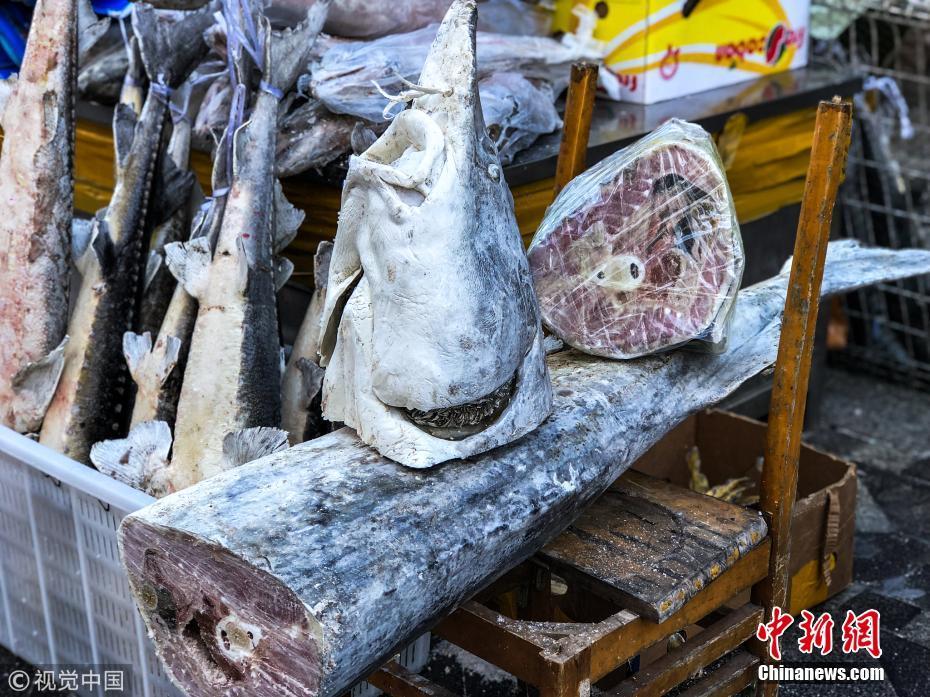 1月12日,黑龍江省佳木斯市撫遠東極魚市,被鋸開的凍魚。棋簿紫 攝 圖片來源:視覺中國