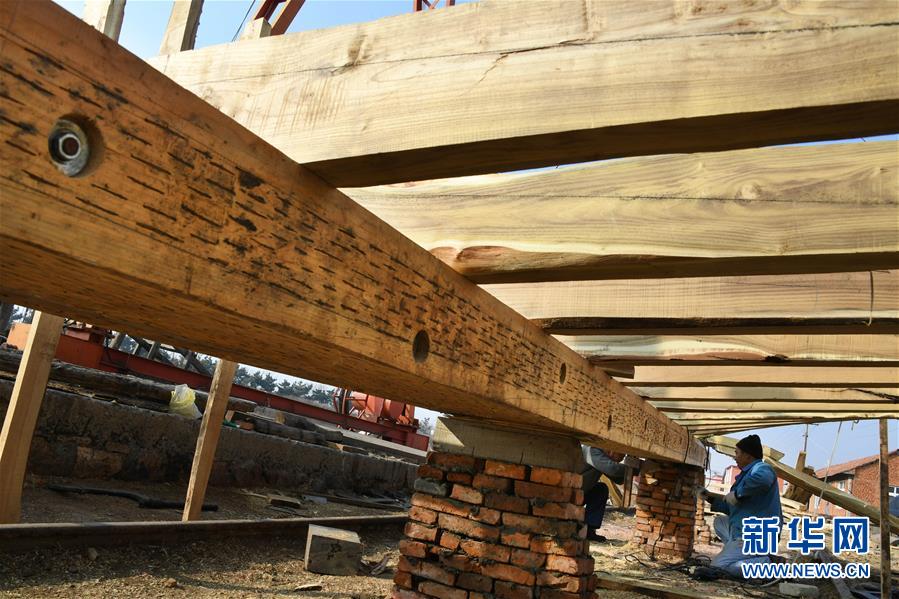 在青島紅雙木造船廠,一位造船師傅在檢查安裝加固龍骨(1月10日攝)。新華社記者 李紫恒 攝