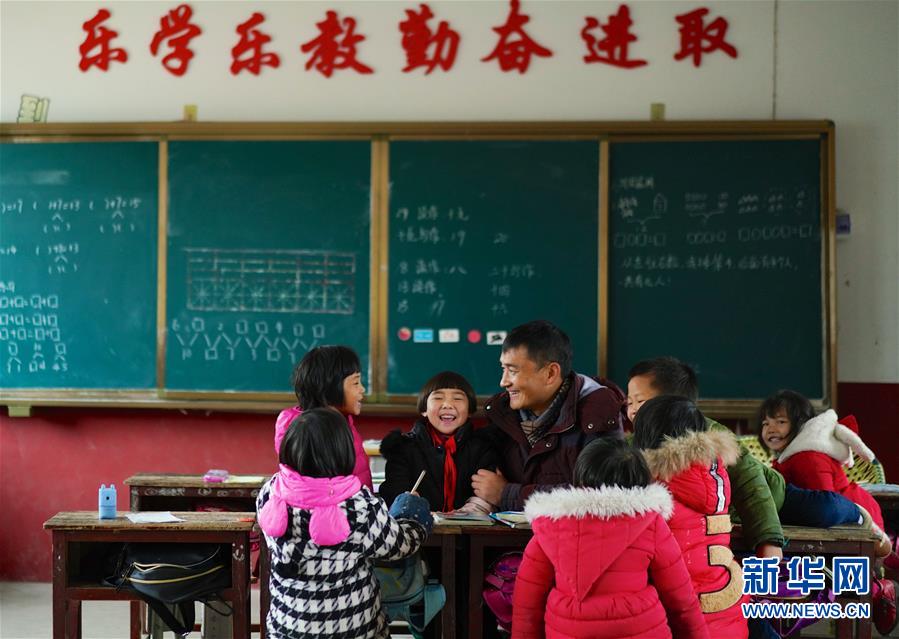 1月3日,章站亮利用課間時(shí)間給學(xué)生們講故事。由于黃泥村地處偏遠(yuǎn),學(xué)生的父母長期不在家,章站亮的故事幾乎成為了學(xué)生了解外界社會的重要方式。 新華社記者 胡晨歡 攝