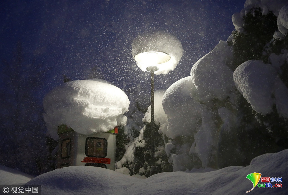 奧地利暴風雪持續(xù) 公交車站被積雪掩埋