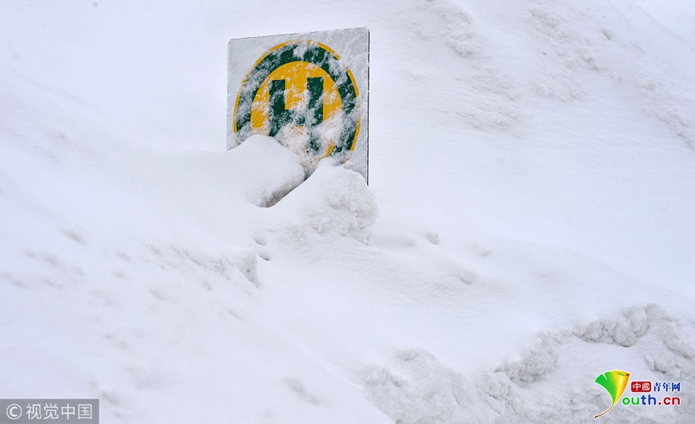 奧地利暴風雪持續(xù) 公交車站被積雪掩埋