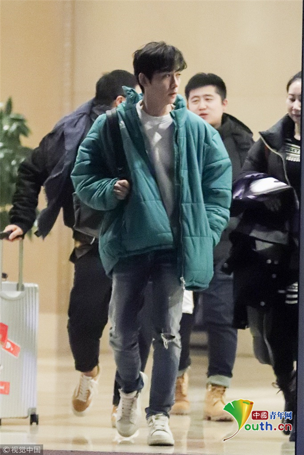 1月15日,北京,朱一龍現(xiàn)身機場。他穿綠色棉襖一路插兜保暖,搭配破洞褲潮范兒十足長腿搶鏡,打扮簡單毫無男神包袱,看鏡頭還一臉呆萌,但氣質(zhì)仍然出眾。