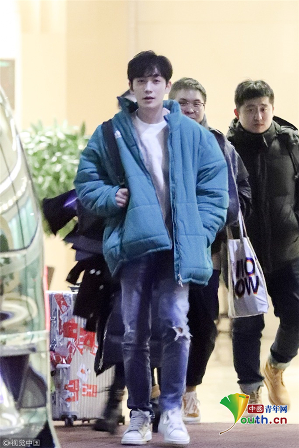 1月15日,北京,朱一龍現(xiàn)身機(jī)場。他穿綠色棉襖一路插兜保暖,搭配破洞褲潮范兒十足長腿搶鏡,打扮簡單毫無男神包袱,看鏡頭還一臉呆萌,但氣質(zhì)仍然出眾。