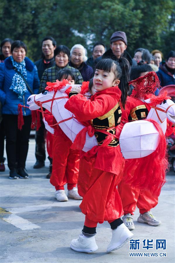 1月16日,孩子們?yōu)樾绿链宕迕癖硌輦鹘y(tǒng)非遺項目——下箬馬燈。下箬馬燈是發(fā)源于長興縣的民間舞蹈,距今已有1000多年歷史。 臨近春節(jié),浙江省長興縣開發(fā)區(qū)中心幼兒園的老師和孩子們來到長興縣太湖街道下屬的新塘村,為村民表演文藝節(jié)目,用喜慶的傳統(tǒng)舞蹈營造節(jié)日氣氛。另外孩子們還用紙盒、瓶子、彩色包裝紙等廢舊物品制作了環(huán)?;?,送給村民,倡導低碳環(huán)保的節(jié)日新風。 新華社記者 徐昱 攝