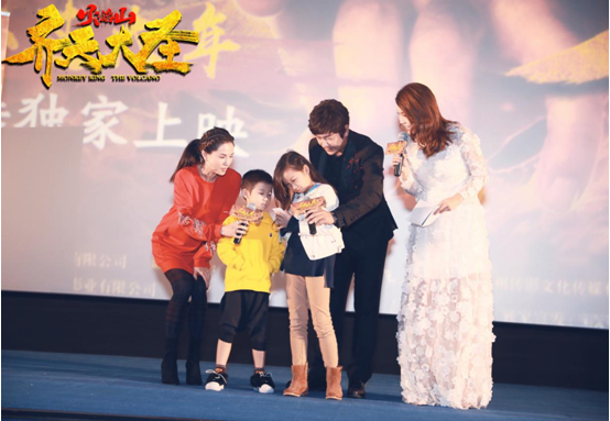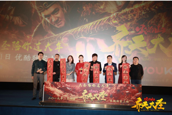 由于《齊天大圣之火焰山》的上線時(shí)間正巧是在春節(jié)假期前后,是名副其實(shí)的“春節(jié)檔”。因此,在發(fā)布會(huì)現(xiàn)場,主持人引領(lǐng)現(xiàn)場觀眾為影片《齊天大圣之火焰山》加油助威,喊出了“大圣陪你過大年”的口號(hào)?,F(xiàn)場陳浩民及李若彤在觀眾們的歡呼聲中,與大家一起和影留念,并在現(xiàn)場為觀眾和粉絲朋友們派發(fā)了小禮品。作為春節(jié)檔上線的網(wǎng)絡(luò)電影,《齊天大圣之火焰山》在一定程度上有著相當(dāng)深刻的行業(yè)意義,此次發(fā)布會(huì)也為影片的定檔上線喝足了彩頭。