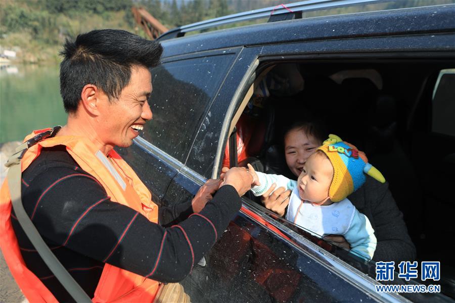 1月22日,賴福昌(左)與乘坐渡輪的小孩交流。 新華社記者 歐東衢 攝