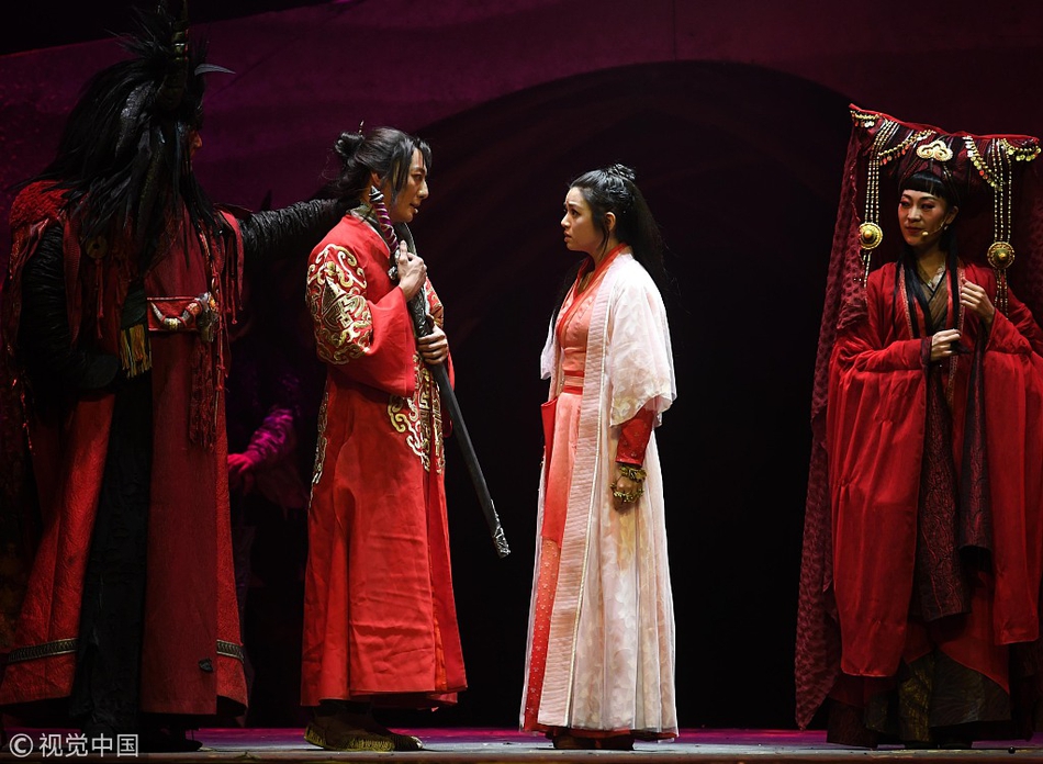 日前,舞臺(tái)劇《大話西游之大圣娶親》在梅蘭芳大劇院首次公開(kāi)演出。陳妍希飾演“紫霞仙子”靈氣十足。視覺(jué)中國(guó)/圖