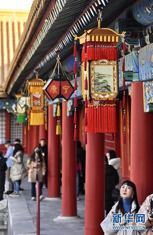 這是在故宮內(nèi)拍攝的古代宮廷節(jié)日裝飾品(1月25日攝)。 春節(jié)將至,北京故宮博物院內(nèi)張燈結(jié)彩,到處懸掛著宮燈、萬壽燈、年畫、門神、福字等古代宮廷節(jié)日裝飾品,讓來自國內(nèi)外的游人感受到濃濃的年味。 新華社記者 李欣攝