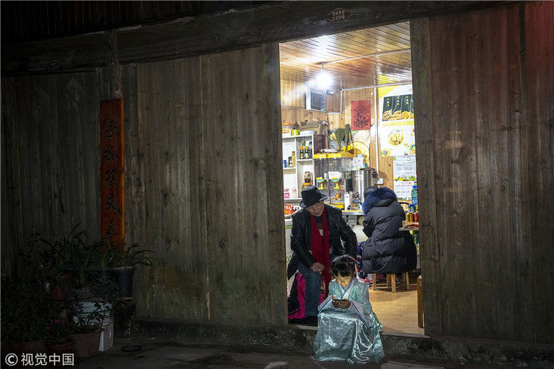 重慶江津區(qū)中山古鎮(zhèn)第十四屆 “千米長宴”民俗文化節(jié)盛大啟幕。上午10時,中山古鎮(zhèn)老街人聲鼎沸,窄窄的青石板路打掃得干干凈凈,家家戶戶門口掛起喜慶的紅燈籠,老商鋪門口擺滿了米酒、烤糍粑、煙熏豆腐……此次“千米長宴”以“絲路情緣,‘埃’上中山”為主題?!扒组L宴”期間,游客們不僅可以一雙筷子吃遍全街,還可欣賞到祈福祭祀、民俗拜年、“打盆上菜”等表演,同時還增設(shè)了以唱、跳、講故事的上菜方式情景演繹愛情主題的文化餐飲,展示富硒愛情宴的文化內(nèi)涵。圖為街坊們在頭天就開始準(zhǔn)備各種菜肴與小吃。