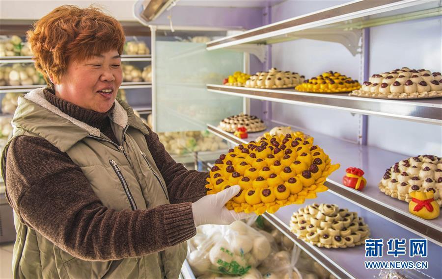 1月31日,河北黃驊市一家面花作坊的工人在查看面花。 河北黃驊市有著過年蒸面花的習(xí)俗。春節(jié)前夕,當(dāng)?shù)孛婊ㄖ谱鞴S加班加點制作面花,供應(yīng)春節(jié)市場。 新華社記者牟宇攝