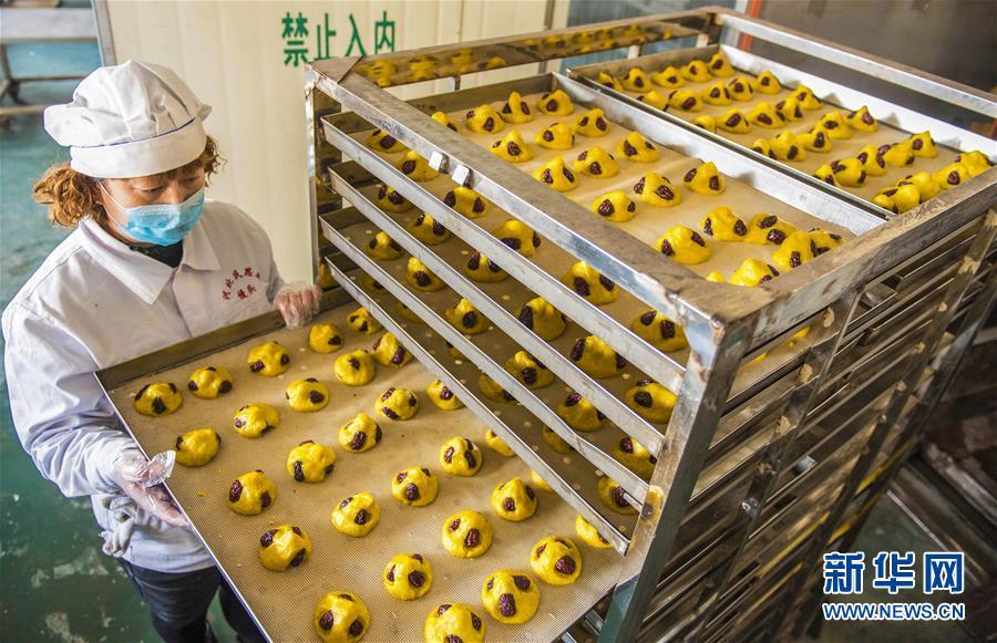 1月25日,在河北棗強一家食品公司,工人將新鮮花糕出爐。 春節(jié)臨近,河北省棗強縣面食加工廠的面點師傅們忙著趕制花糕、花饃等傳統(tǒng)面食,以供應(yīng)節(jié)日市場。當(dāng)?shù)赜羞^年蒸花糕、做花饃的習(xí)俗,寓意步步登高,生活一年比一年好。 新華社記者 李曉果攝