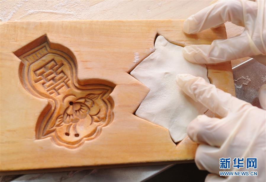 1月31日,河北黃驊市一家面花作坊的工人用面花模子制作面花。 河北黃驊市有著過年蒸面花的習俗。春節(jié)前夕,當地面花制作工廠加班加點制作面花,供應春節(jié)市場。 新華社記者牟宇攝