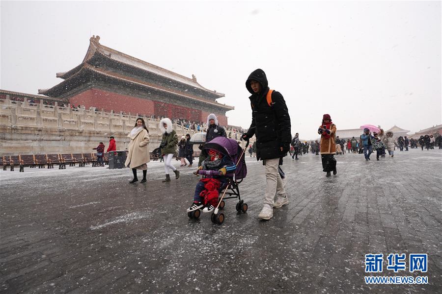 2月14日,游客在雪中游覽北京故宮。 當日,北京降雪,大批游人來到故宮游覽賞雪。 新華社記者 鞠煥宗 攝
