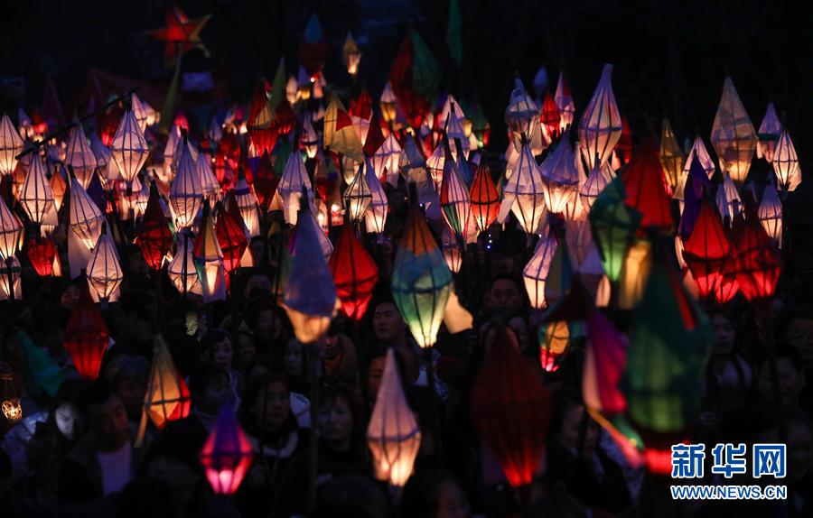 2月18日,在四川省南充市嘉陵區(qū)金寶鎮(zhèn),群眾舉著“蠐蟆燈”巡游。 當(dāng)日是農(nóng)歷正月十四,夜幕降臨后,川渝等地數(shù)萬名群眾在四川省南充市嘉陵區(qū)金寶鎮(zhèn)匯聚,點亮“蠐蟆燈”,敲著鑼鼓唱著歌謠,將“蠐蟆”送到幾公里外的田邊或者河邊燒掉,祈福健康平安。星星點點的燈光在鄉(xiāng)間小路閃爍移動,場面壯觀熱烈。 “送蠐蟆”祈福這一習(xí)俗源于清朝,歷經(jīng)演變成為川東北地區(qū)一個古老而神秘的地方民俗節(jié)日。 新華社記者 江宏景 攝