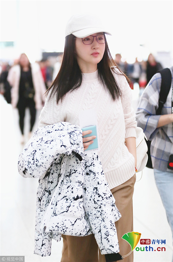 楊鈺瑩棒球帽配黑框鏡文藝十足 皮膚白皙保養(yǎng)好
