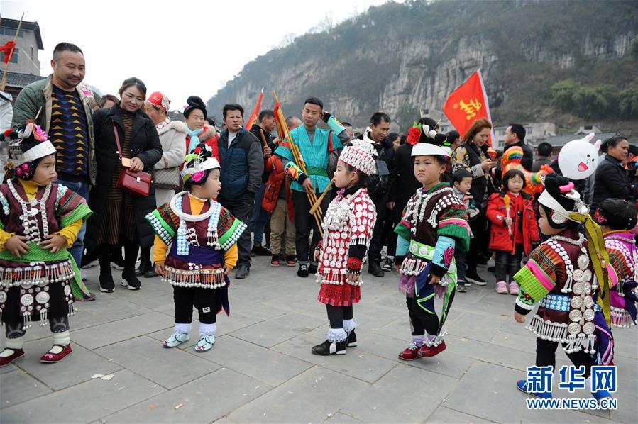 2月24日,在貴州省凱里市舟溪鎮(zhèn),苗族小姑娘身著盛裝跳蘆笙舞。 當(dāng)日,在貴州省黔東南苗族侗族自治州凱里市舟溪鎮(zhèn),來自各地的苗族群眾身著節(jié)日盛裝,歡聚在古老的“甘囊香”蘆笙堂,男子吹奏起蘆笙,姑娘和孩子們跳起蘆笙舞,歡度新春,祈求風(fēng)調(diào)雨順、五谷豐登,青年男女也借此良日尋覓意中人。 “甘囊香”是苗語音譯,意思為“河流的下游,神仙匯聚的地方”?!案誓蚁恪碧J笙會是貴州規(guī)模最大、最古樸的苗族蘆笙會之一。 新華社記者楊文斌攝