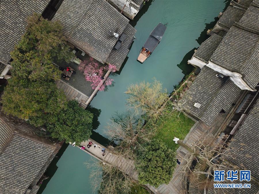 2月25日,游人在烏鎮(zhèn)游覽觀光(無人機(jī)拍攝)。 隨著氣溫升高,浙江省桐鄉(xiāng)市烏鎮(zhèn)景區(qū)春意萌動。 新華社記者翁忻旸攝