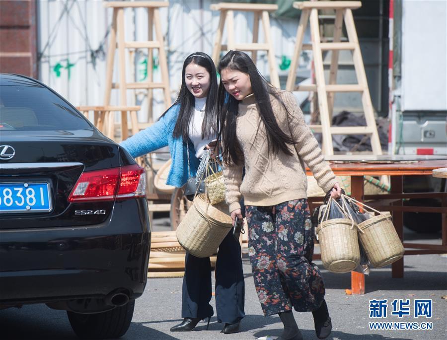 3月12日,兩位女士在福建武夷山“柴頭會”上采購后準(zhǔn)備乘車離開。 新華社記者 宋為偉 攝