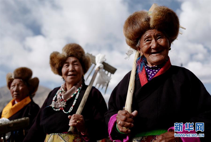 3月16日,山南市乃東區(qū)克松社區(qū)居民在開耕儀式上。 當(dāng)日,西藏各地男女老幼身著節(jié)日盛裝,駕著一輛輛由彩旗、花朵裝扮一新的拖拉機,涌向待墾的農(nóng)田,載歌載舞迎來一年一度的開耕儀式。 新華社記者 普布扎西 攝