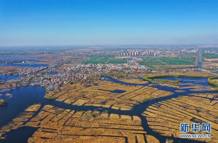 這是3月31日無人機拍攝的雄安新區(qū)白洋淀。新華社記者邢廣利攝