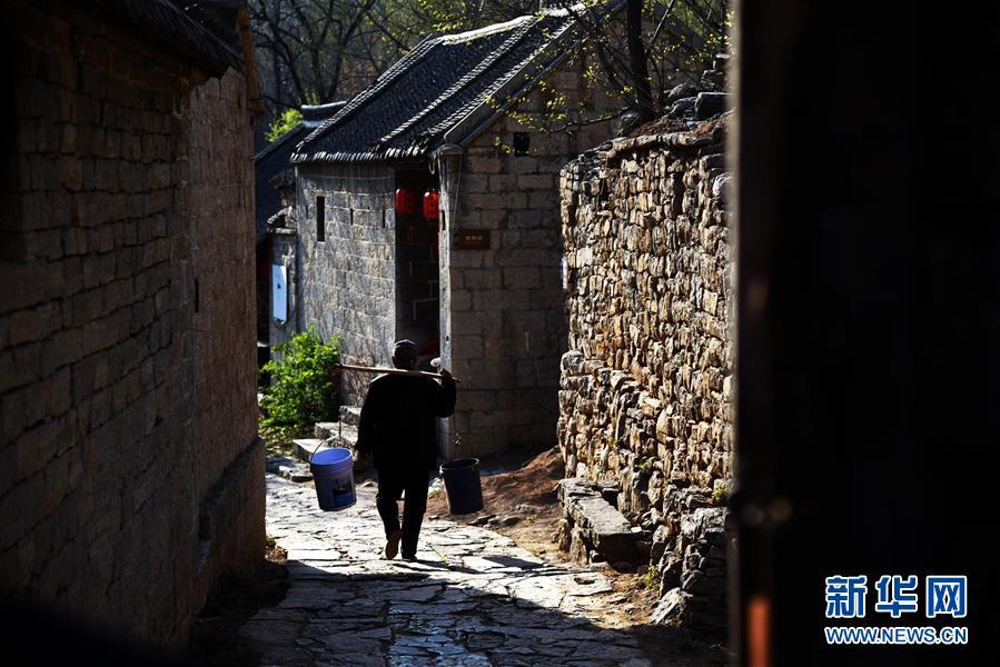 3月31日,村民挑擔走在上九山村的一條小道上。山東省鄒城市石墻鎮(zhèn)上九山村始建于宋代,是一座依山而建的石頭村,有明清建筑風格的古民居300余套,古樸傳統(tǒng)的村貌吸引眾多游客。2019年1月,上九山村入選第七批中國歷史文化名村。 新華社記者 王凱 攝