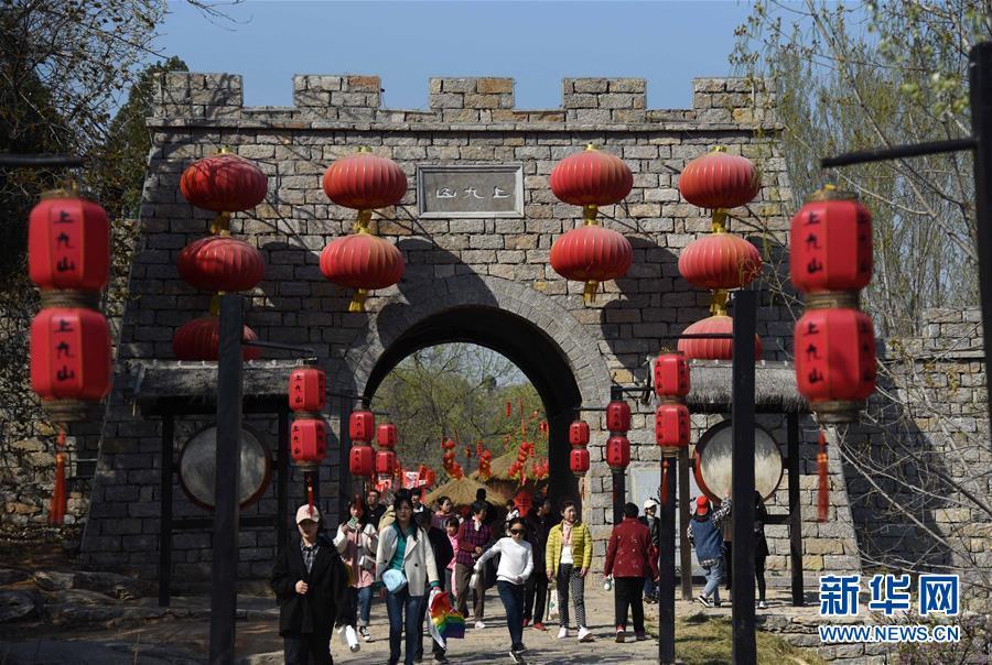 3月31日,游客在上九山村入口處游覽。山東省鄒城市石墻鎮(zhèn)上九山村始建于宋代,是一座依山而建的石頭村,有明清建筑風格的古民居300余套,古樸傳統(tǒng)的村貌吸引眾多游客。2019年1月,上九山村入選第七批中國歷史文化名村。 新華社記者 王凱 攝