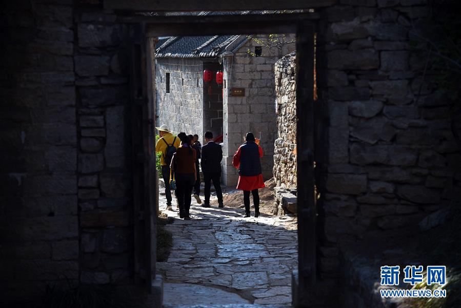 3月31日,游客在上九山村游覽。山東省鄒城市石墻鎮(zhèn)上九山村始建于宋代,是一座依山而建的石頭村,有明清建筑風格的古民居300余套,古樸傳統(tǒng)的村貌吸引眾多游客。2019年1月,上九山村入選第七批中國歷史文化名村。 新華社記者 王凱 攝